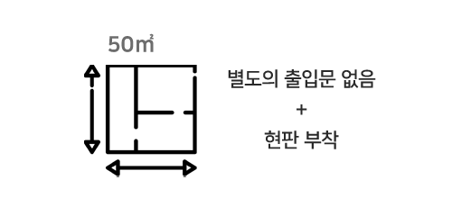 독립공간을 연구공간으로 확보하지 못할 경우 전용면적 50㎡ 이하인 연구공간을 다른 부서와 칸막이 등으로 구분하여 운영할 수 있다. (단, 연구소 현판을 칸막이에 부착)